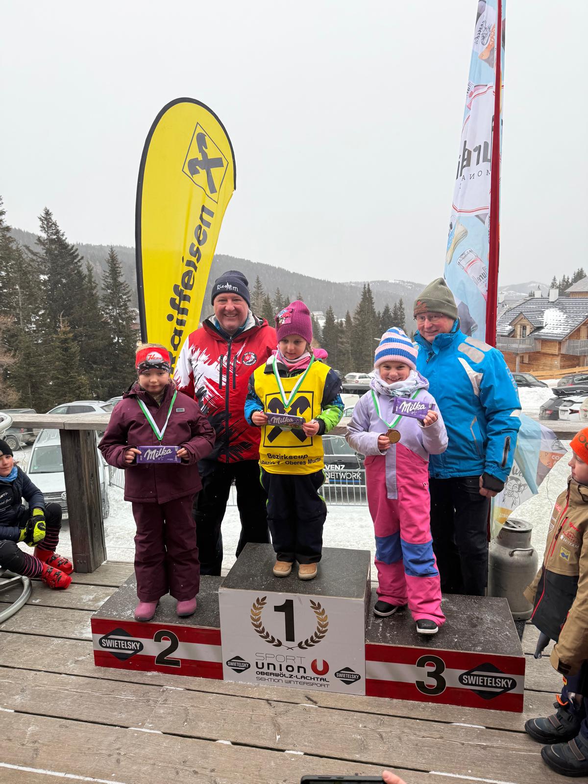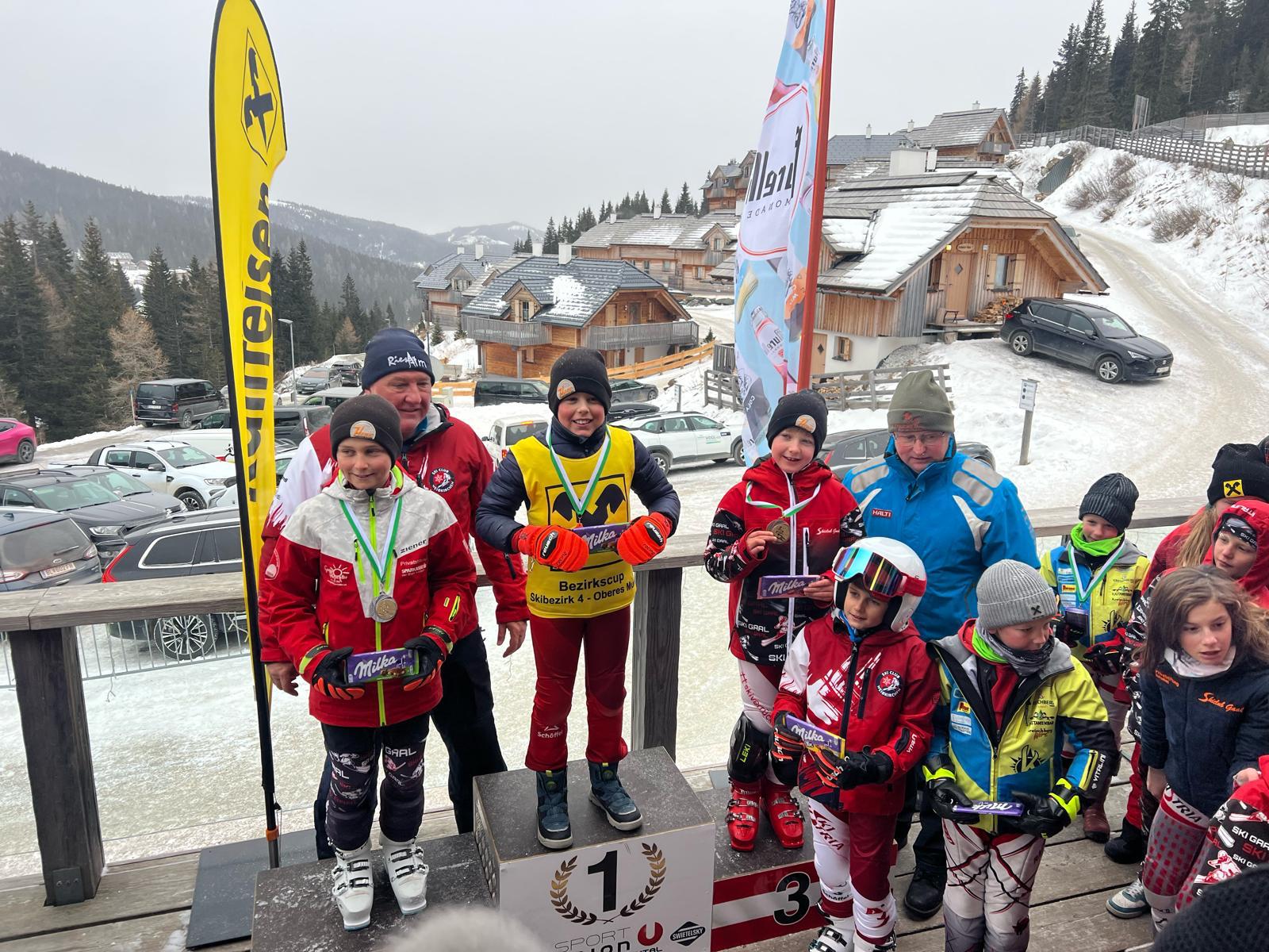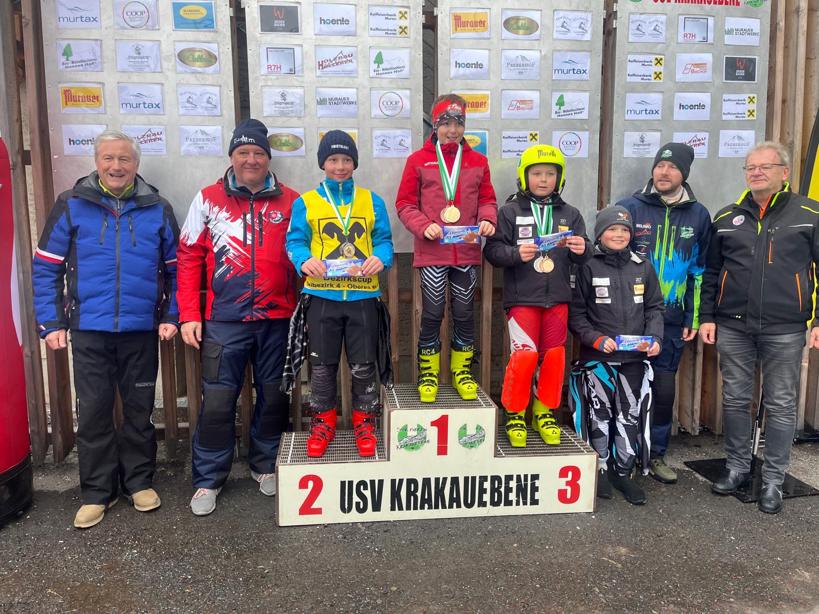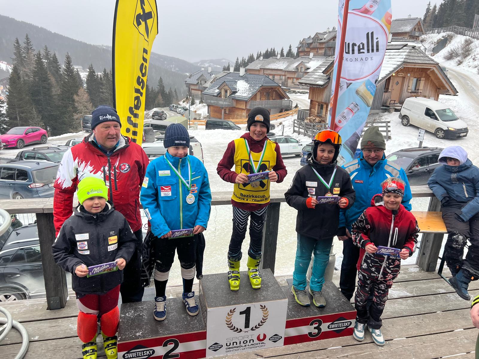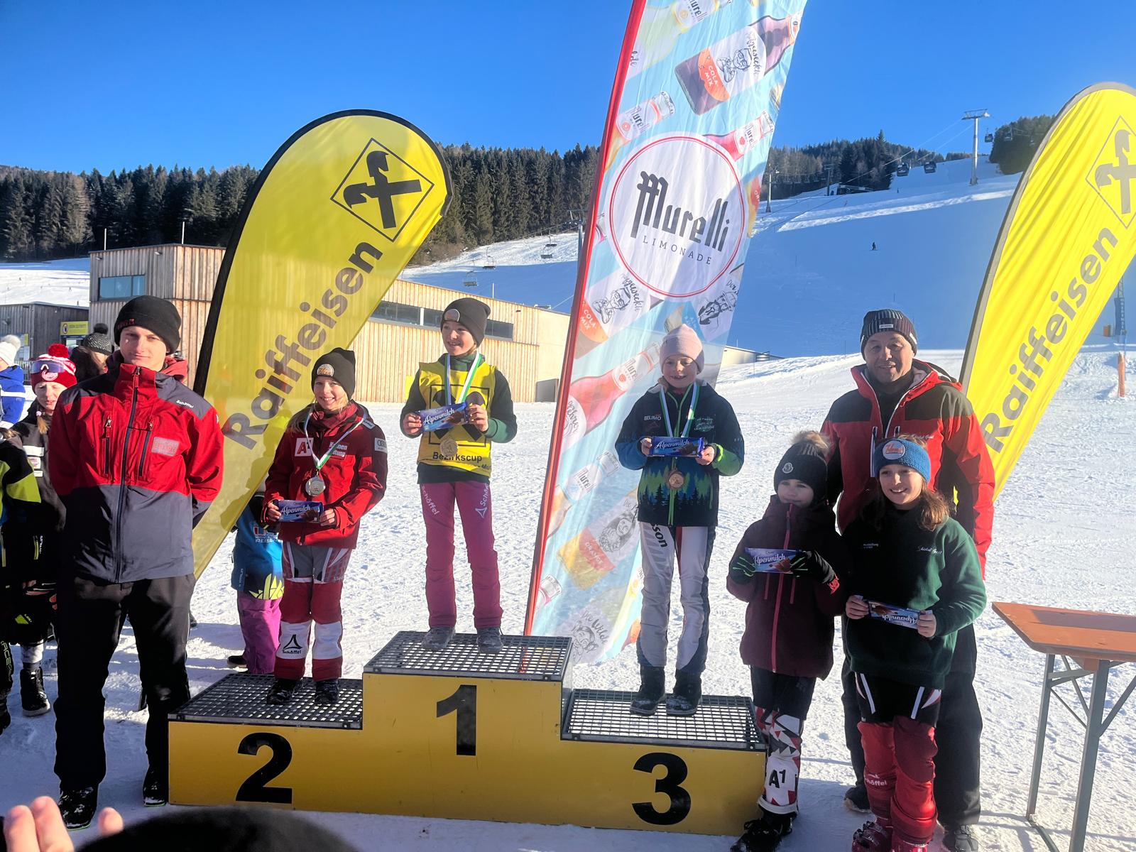 Hervorzuheben sind zudem die Leistungen von Mia Strahlhofer (Kinder 8), die als Zweitplatzierte des Riesentorlaufs und Dritte des Slaloms zwei Podestplätze schaffte, Laura Zangrando, Selina Koller (beide Kinder 9) als Zweite bzw. Dritte des Riesentorlaufs, sowie Liam Bergmann (Kinder 10), der sich über seinen zweiten Platz im Slalom freuen durfte.