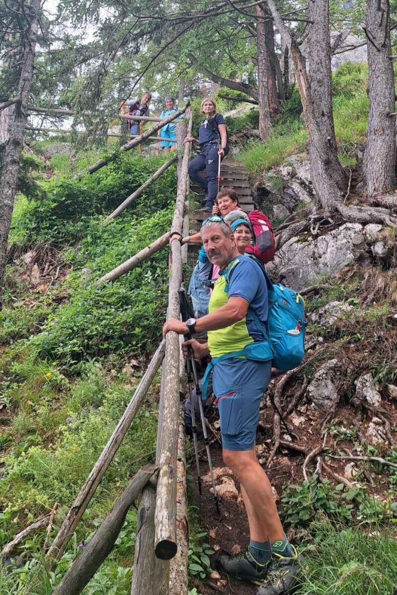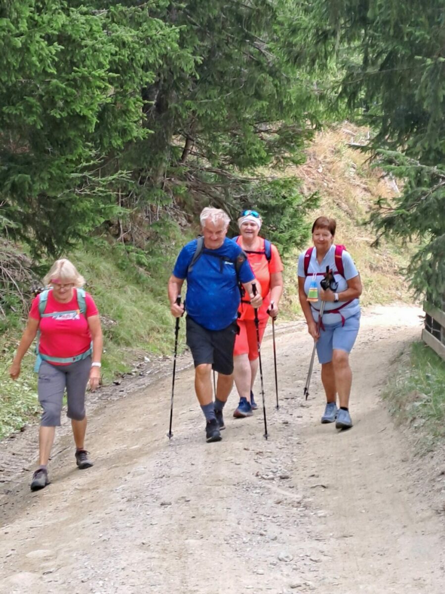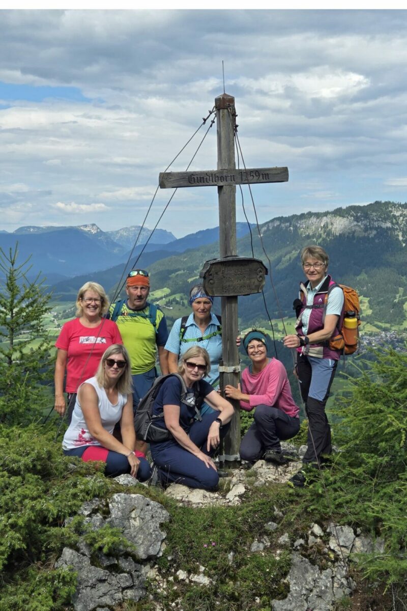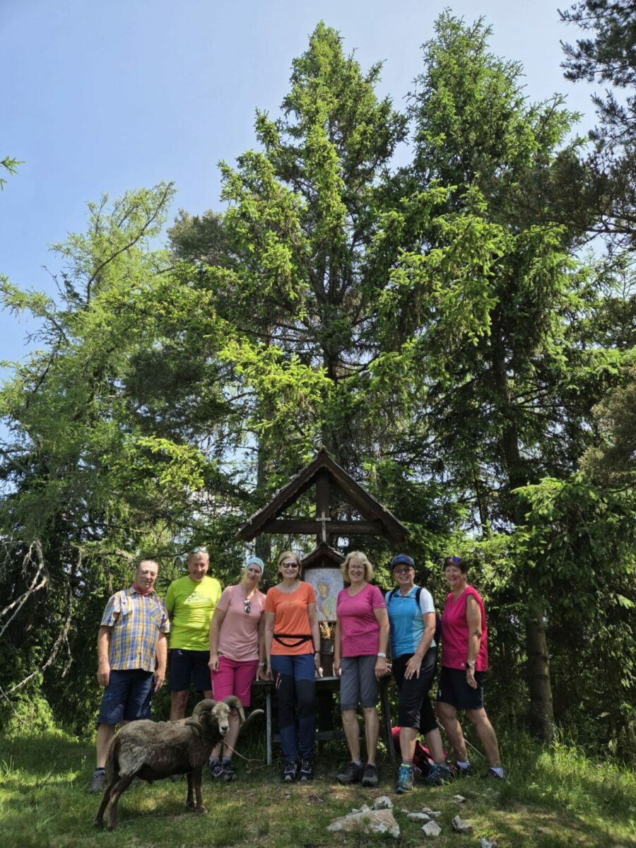 Die Wanderung führte mit einigen steilen Passagen vom Parkplatz in Pürgg aus zur Schröflalm und auf das in 1259 m Höhe gelegene Gindlhorn. Von dort hatten wir wunderbare Ausblicke auf Pürgg, nach Bad Mitterndorf, Wörschachwald und zum Multereck. Zurück ging es über einen Waldweg zum Gasthof Dachsteinblick und den malerischen Marterlweg entlang des alten Kirchweges bis zum Ausgangspunkt in Pürgg.