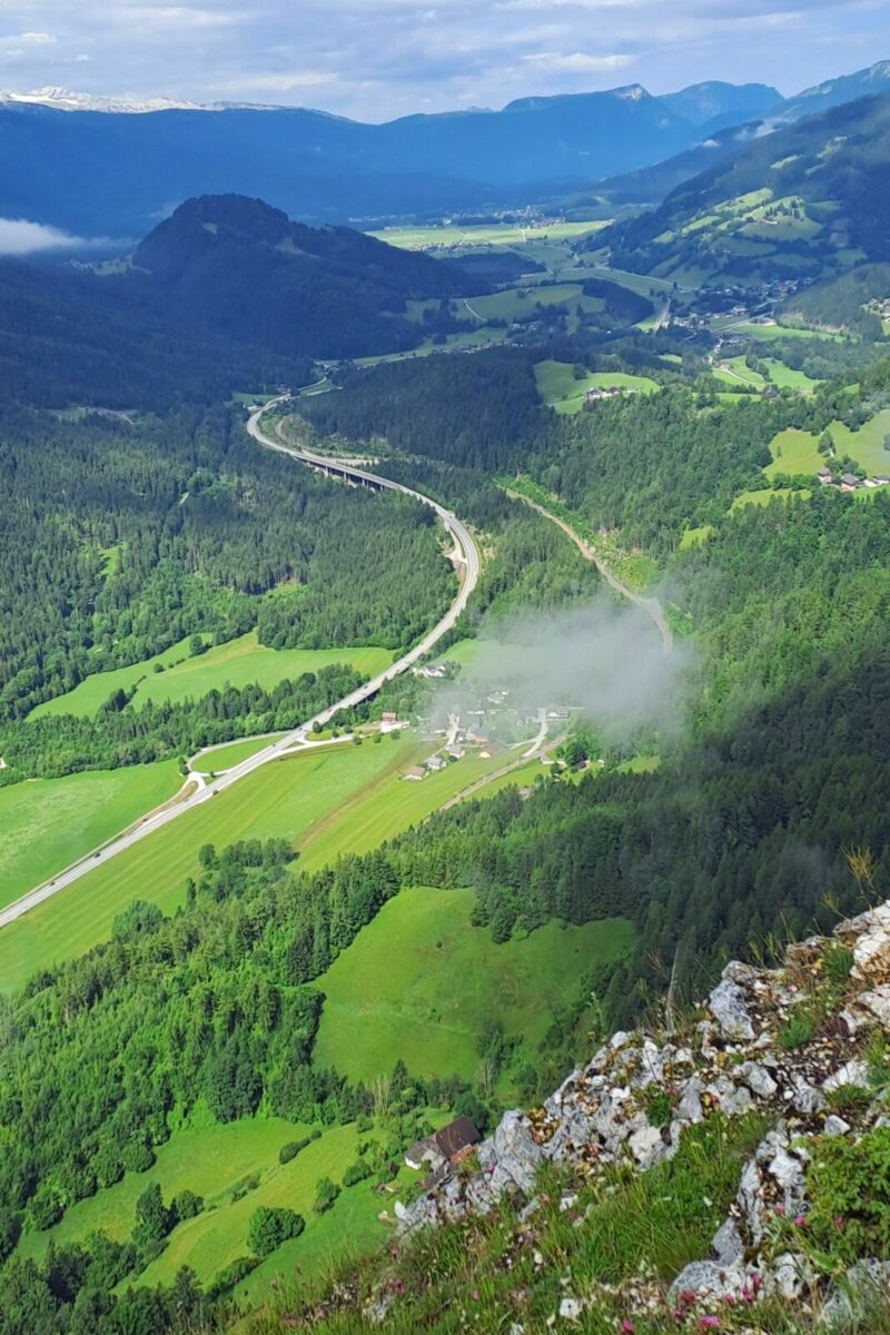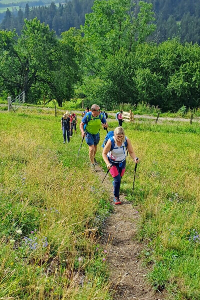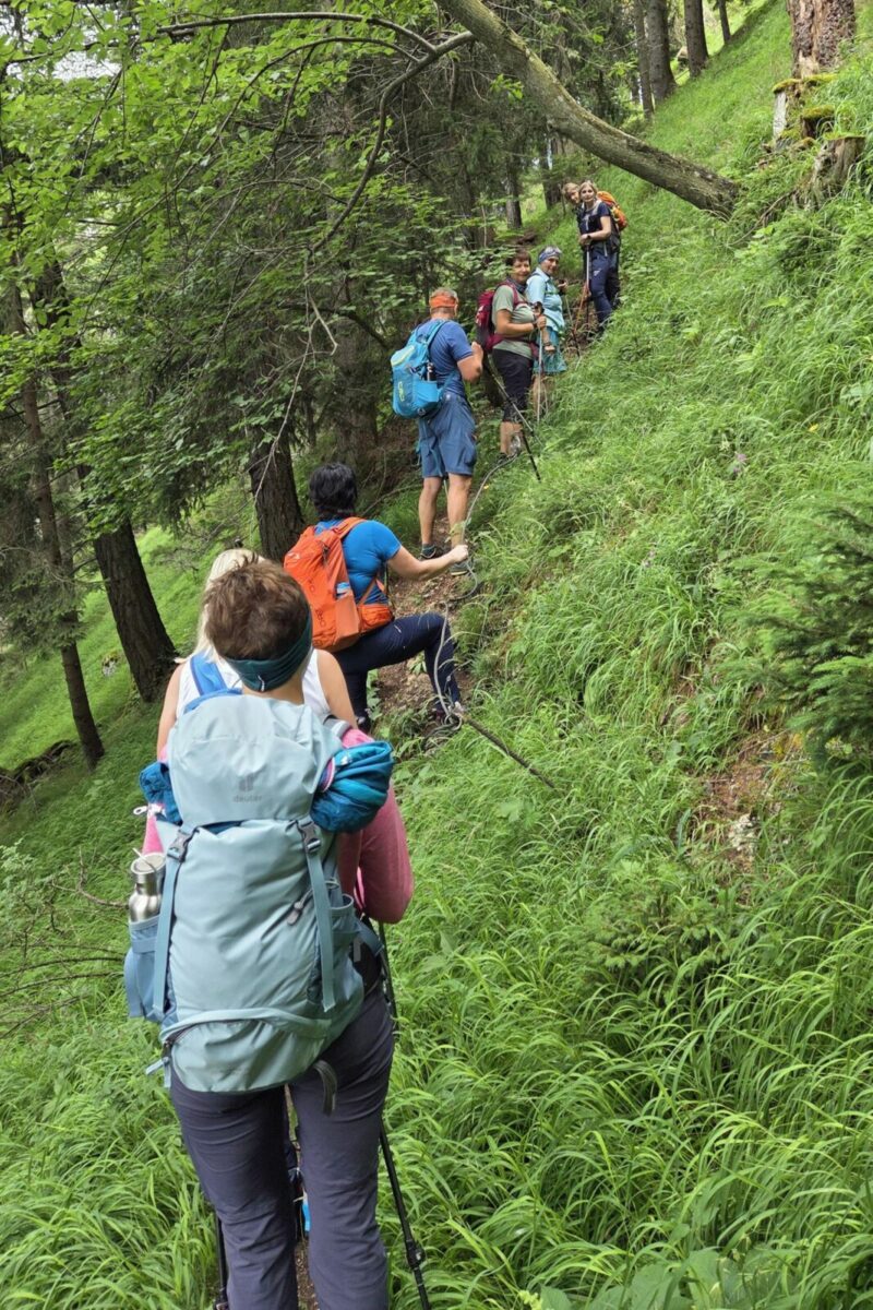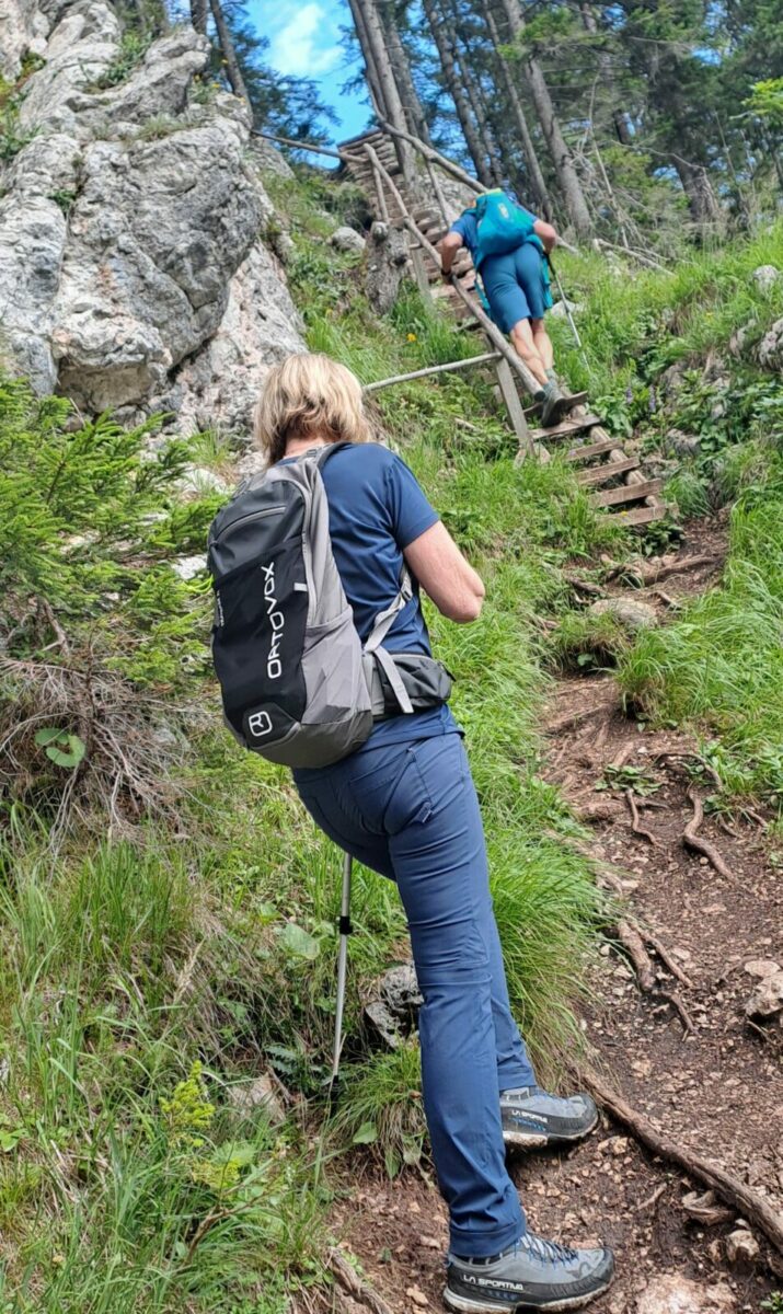 Die Wanderung führte mit einigen steilen Passagen vom Parkplatz in Pürgg aus zur Schröflalm und auf das in 1259 m Höhe gelegene Gindlhorn. Von dort hatten wir wunderbare Ausblicke auf Pürgg, nach Bad Mitterndorf, Wörschachwald und zum Multereck. Zurück ging es über einen Waldweg zum Gasthof Dachsteinblick und den malerischen Marterlweg entlang des alten Kirchweges bis zum Ausgangspunkt in Pürgg.